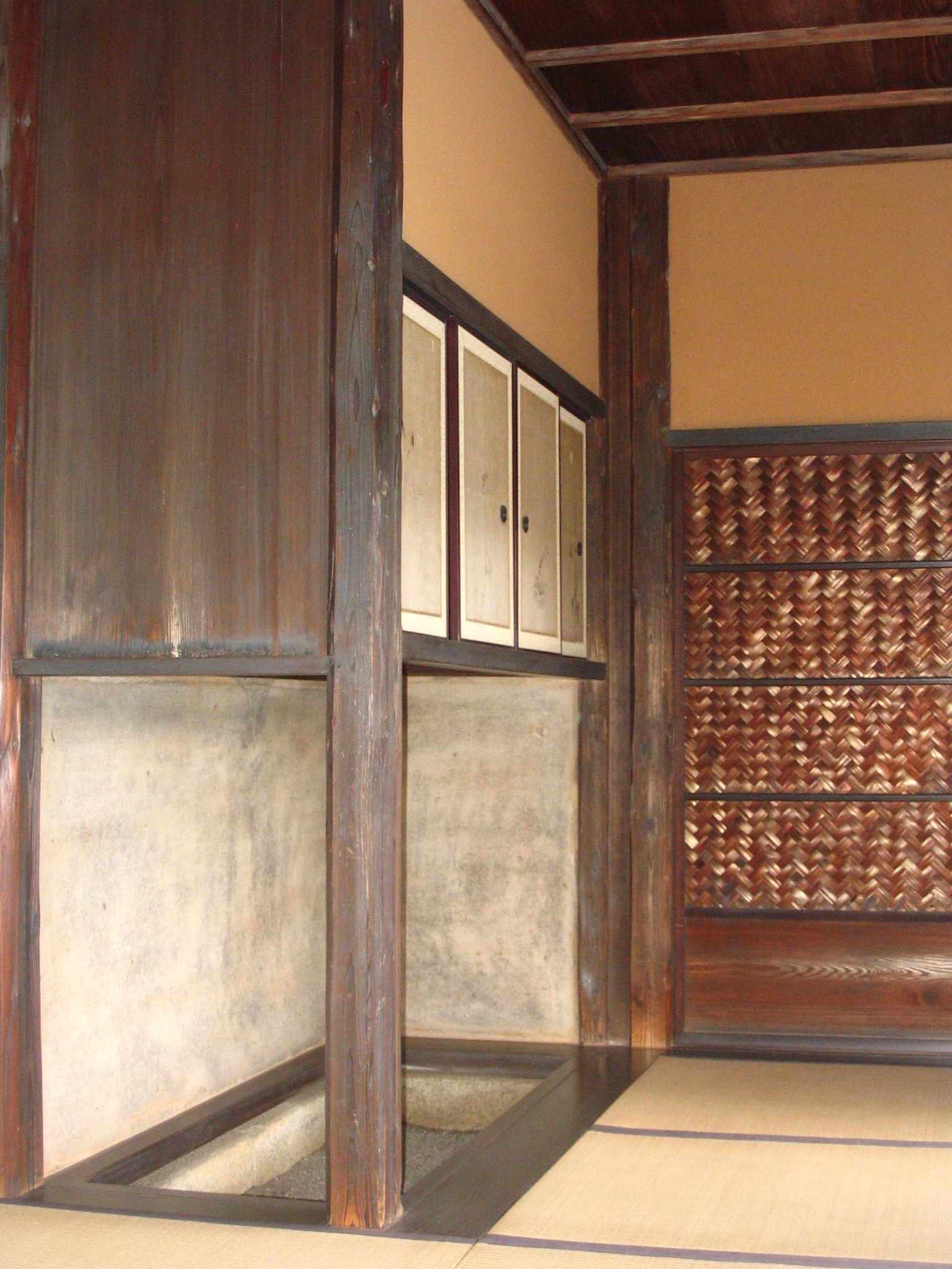After three years of teaching English, I was on a mission to find somewhere to learn continually with just clay — not cement-based finishes, which, along with vinyl siding, paint, and wall paper, are the bread and butter of most building finishers in Japan today. My search led me to Kyoto, the mother ship of all things traditional in Japan. There, the Kyoto Plasterer’s Guild runs a school which, unlike other plasterer guilds’ schools, teaches using clay plasters. They are proud of their tradition, and proud of working in the birthplace of the tea house, which demands earthen finishes. In Kyoto there are enough cultural treasures and World Heritage Sites that are required to keep their structures maintained using traditional methods that there are a (very) few crews that specialize in these skills, and work solely with the materials of the past — earthen materials. I was extremely fortunate to join one of these crews, Shikkui Asahara, as an apprentice, after having completed the guild’s six month course.